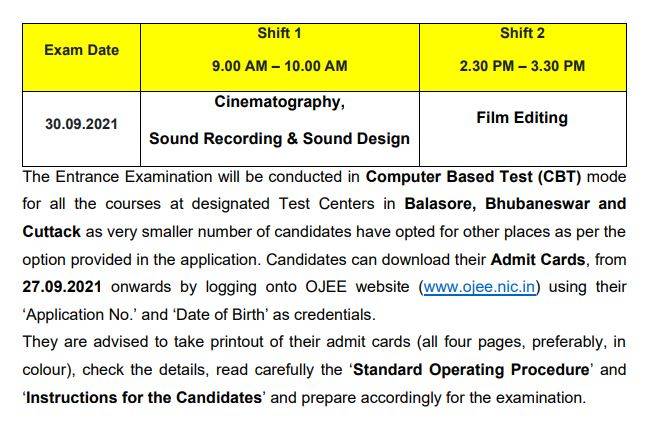 Here are the important dates related to OJEE admit card 2021.