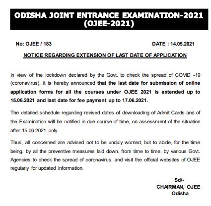 According to the latest notification on the official website of OJEE, OJEE 2021 registrations have been extended till June 15, 2021. The registration dates have been extended in view of the rising coronavirus cases in the country. Earlier the last date to apply for OJEE exam was May 15, 2021. The last date to pay the OJEE application fee has also been extended. According to the official notice, the final dates for OJEE admit card and OJEE exam 2021 will be notified after June 17. Read the article below to know the OJEE dates, how to fill the application form, etc.