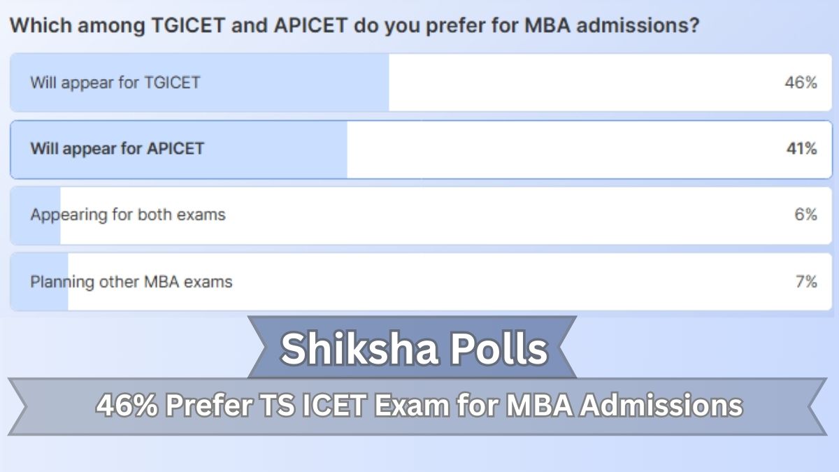 As per a poll conducted by shiksha.com, more than 46 per cent of the participants mentioned TG ICET 2025 as their preference for MBA admissions. This was followed by 41 per cent candidates preferring only AP ICET for admission.