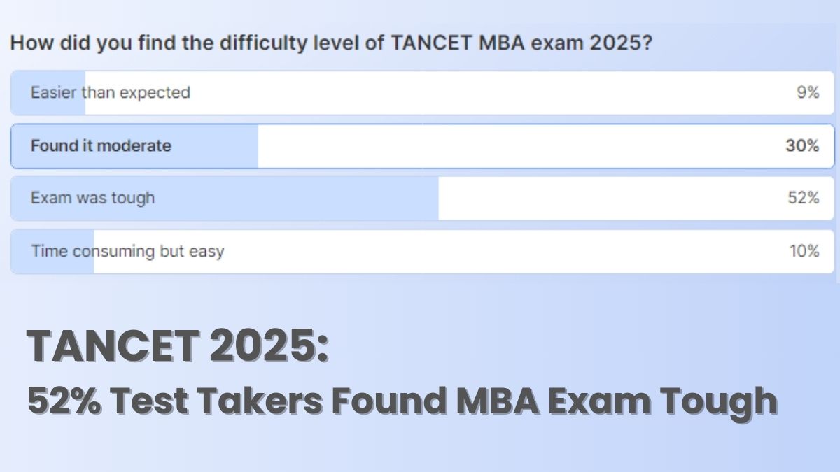 Anna University conducted TANCET 2025 on March 22. Shiksha conducted a poll asking test takers about the exam difficulty level. 52% of the participants found the TANCET MBA exam to be tough. Answer keys will be released on April 1.