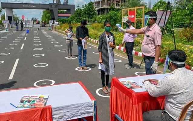 Candidates’ temperature will be taken through infrared thermometers and those with a temperature of or above 99.14 degrees will have to sit in an isolated lab