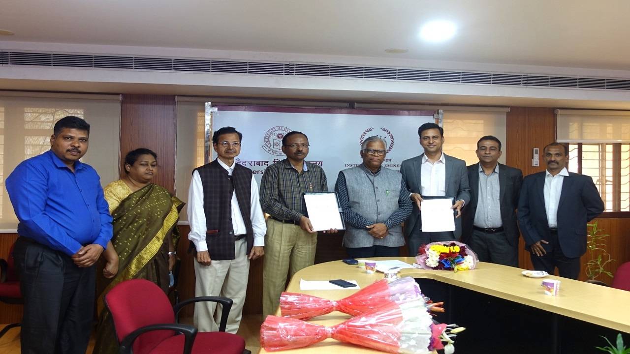 The MoU was signed by Dr Devesh Nigam, Registrar, University of Hyderabad and Arun Kabra, CFO & President Enterprise Business, TimesPro on January 11, 2023, in the presence of Professor B J Rao, Vice-Chancellor, Professor Mary Jessica, Dean, School of Management Studies, Dr S Jeelani, Director-CDVL, Dr. I Lokananda Reddy, UoH, Kuldeep Pareek and MVR Padma Raju from TimesPro.