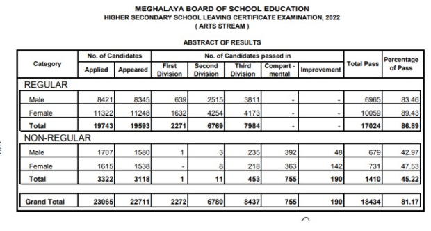 In SSLC result 2022 Meghalaya MBOSE class 10, around 13,443 boys declared pass. While 19, 235 girls were declared pass in matric result 2022 Meghalaya