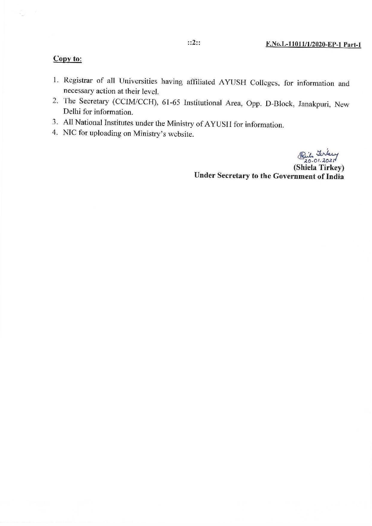This aforesaid information released by the under Secretary GOI has been given to all the state authorities for necessary action and a copy has been then forwarded to Registrar of all Universities having affiliated AYUSH Colleges, for information and necessary action at their level, Secretary (CCIM/CCH), All National Institutes under the Ministry of AYUSH. This clarification is applicable only for the academic year 2020-21.