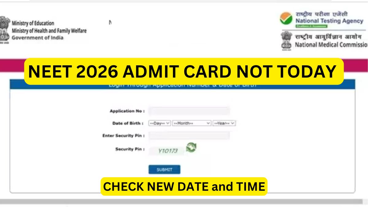 Breaking News!! NEET 2026 Admit Card NOT Today NTA Confirmed, Check New Release Date and Time
