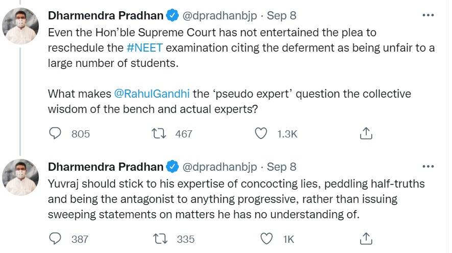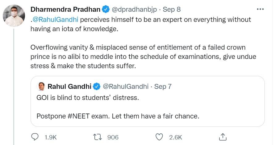 Dharmendra Pradhan slams Rahul Gandhi for demanding NEET-UG 2021 postponement