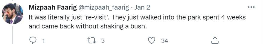 "It was literally just 're-visit'. They just walked into the park spent 4 weeks and came back without shaking a bush."