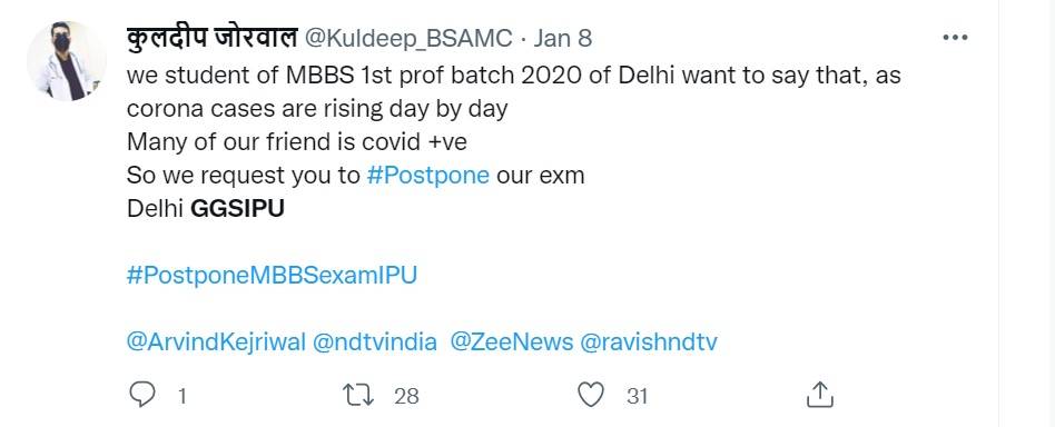 First-year MBBS students at GGSIPU are also demanding to postpone the examination, here are a few related tweets: