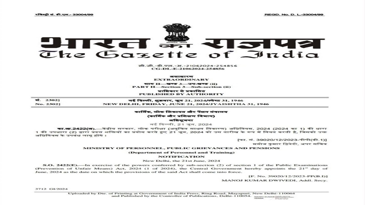 In a significant move to combat examination-related issues such as paper leaks and result delays, the government has enacted the Public Examinations (Prevention of Unfair Means) Act, 2024. This legislation, effective from June 21, 2024, introduces stringent measures to address crimes related to paper leaks, particularly targeting incidents in major exams like NEET and NET.