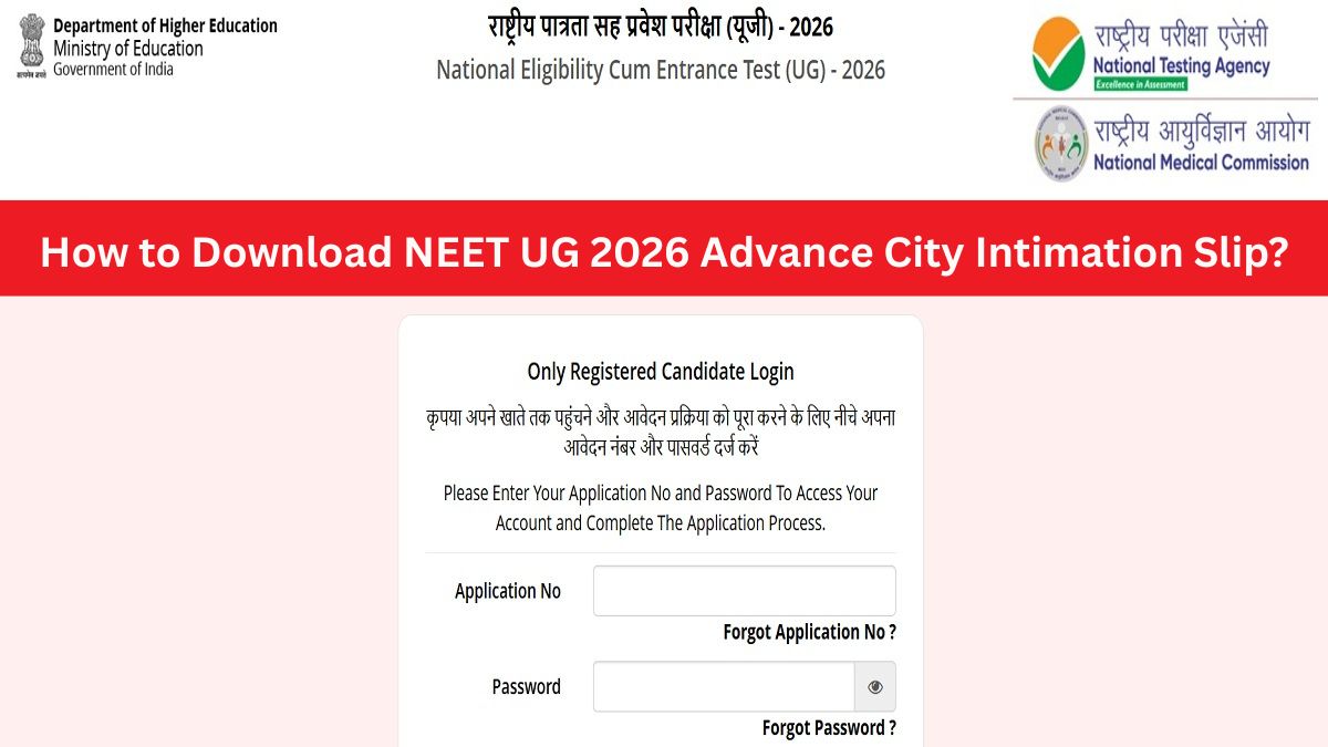 How to Download NEET UG 2026 Advance City Intimation Slip?