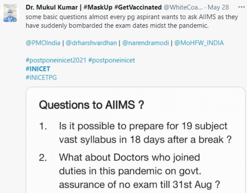 INI CET 2021: When candidates expressed disappointment and demanded deferment of exam date