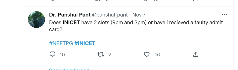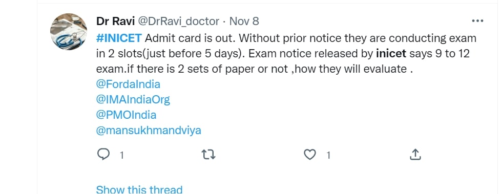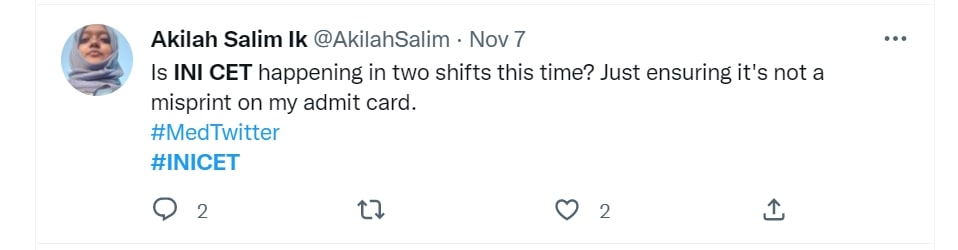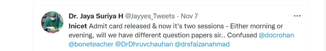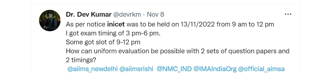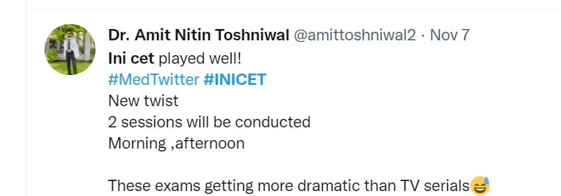 Taking to the twitter, students have expressed concern about the new pattern for the exam. They have no idea whether there will be two different set of INI CET 2023 question paper for two different shifts. How can uniform evaluation be possible with 2 sets of question papers and 2 timings, one of the candidates ask. Some of the reactions of candidates have been provided below:
