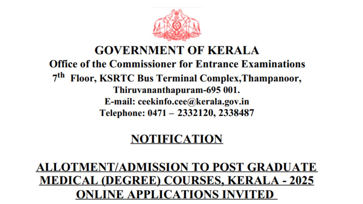 Click Here: Kerala NEET PG 2025 Apply Online Link