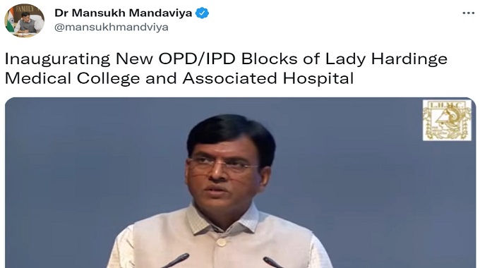 Dr Mansukh tweeted, "Inaugurating New OPD/IPD Blocks of Lady Hardinge Medical College and Associated Hospital."