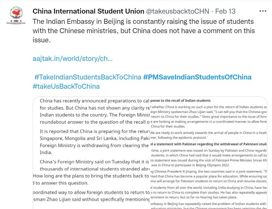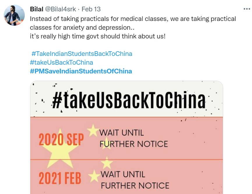 The students are demanding to return back to China on Twitter, following are a few related tweets:
