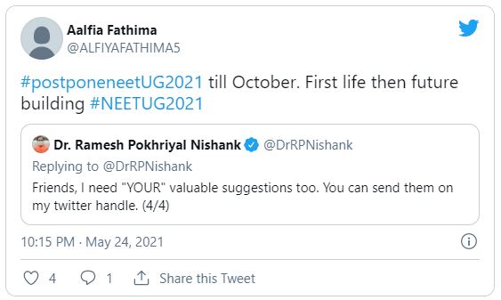 Amid delay in NEET 2021 application form release dates due to the ongoing COVID 19 crisis, students are demanding to postpone the National level entrance exam until October.