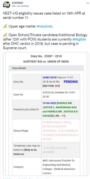 The Supreme Court of India will hear the case on NEET 2022 eligibility criterion regarding Open Schooling and studying Biology as an additional subject on April 19. Know the details here.