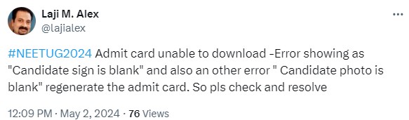 NEET 2024 admit card was released by NTA on May 2, 2024. However, candidates are complaining about facing issues while downloading or printing the admit card for NEET 2024. Know the list of problems along with the other important information here on this page.