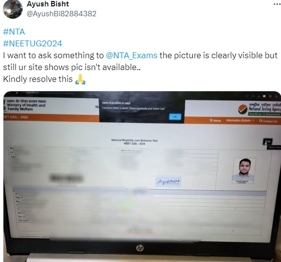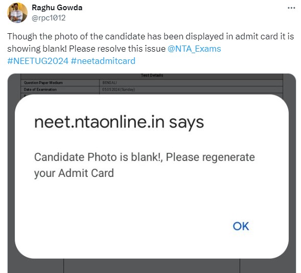 Some candidates have complained that the space provided on the NEET 2024 admit card is not enough to paste the passport-size and postcard-size photographs for NEET. Hence, they have raised their concerns about the matter and urged NTA to rerelease the NEET admit card 2024 in proper size and format.