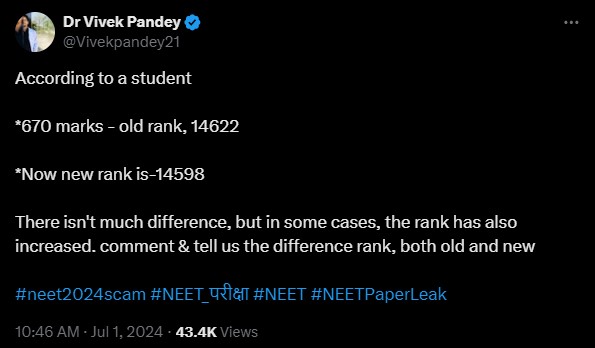 NEET 2024 Re-exam Result: Total Number of Toppers Reduced to 61