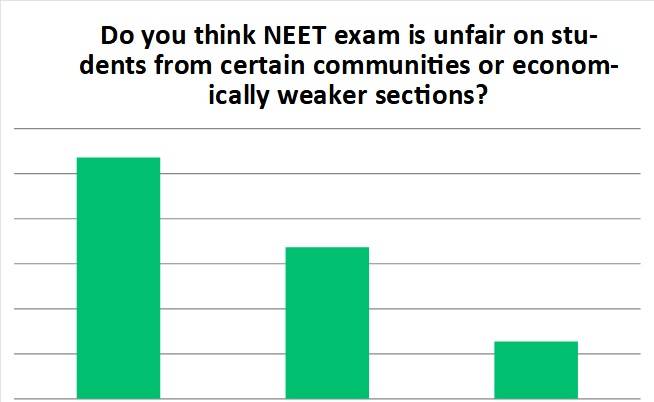 As per the result of the survey, 53.61 percent of respondents were of the view that ‘NEET exam is unfair on students from certain communities and economically weaker sections. However, 33.66 percent did not agree with this and feel that NEET gives fair chance to everyone.