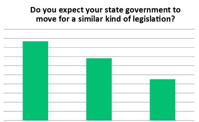 During the survey, when asked if the respondents expect similar kinds of legislation from their state governments, 43.39% said ‘Yes', while 34.06% said ‘No’ and 22.55% were ‘not sure’.