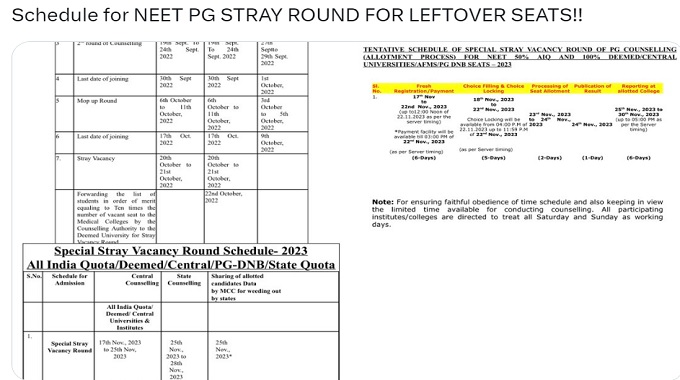 NEET PG 2023 special stray vacancy round for vacant seats likely to start on Nov 17