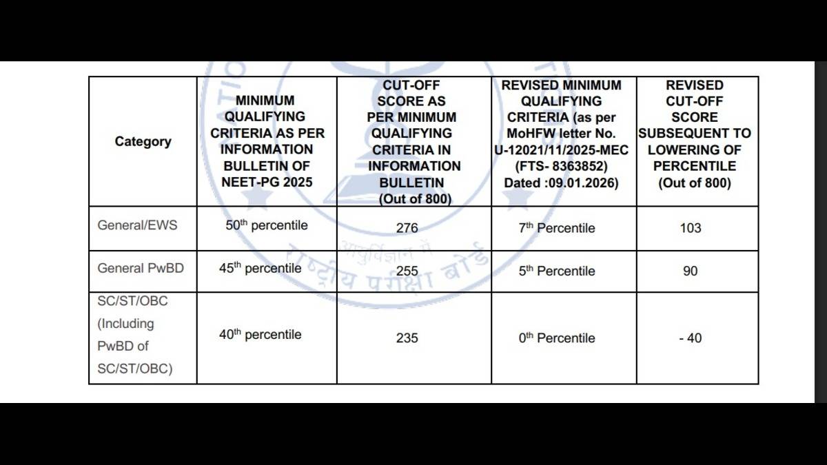 NEET PG 2025 cutoff reduced by NBE