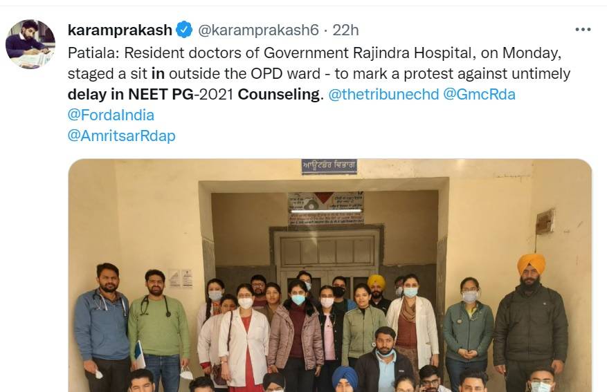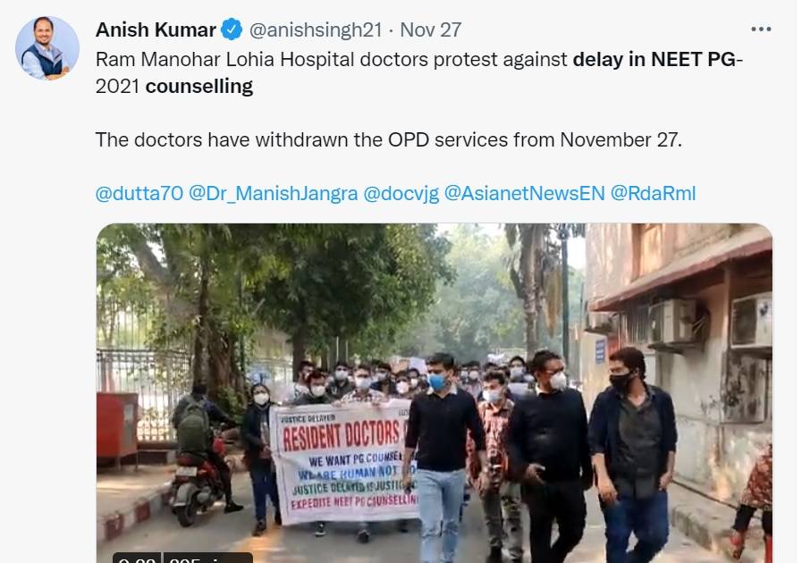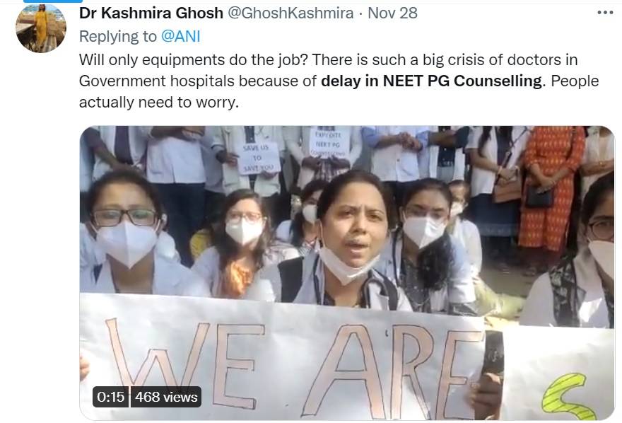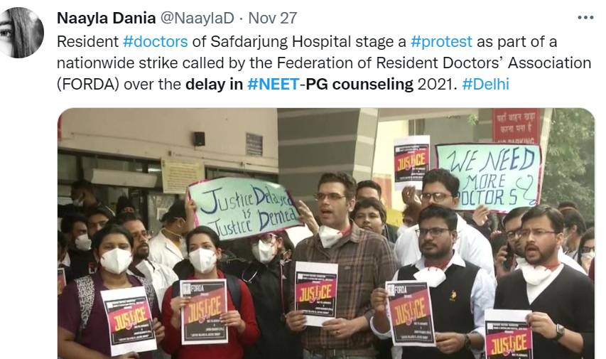 Some of the tweets related to nationwide protest of doctors against delay in NEET PG Counselling 2021 are: