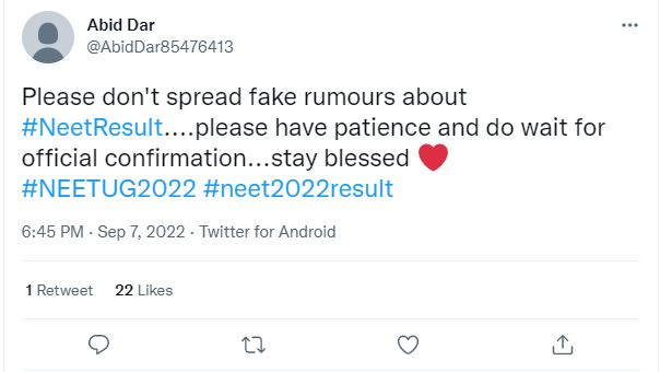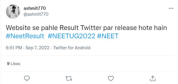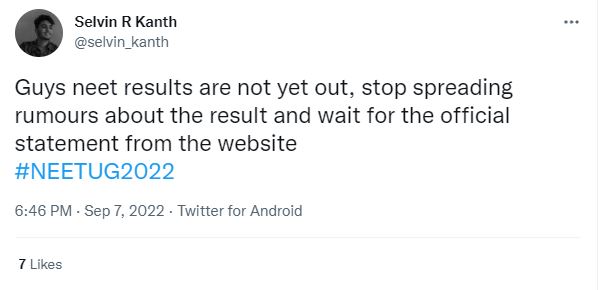 NEET 2022 result will be declared today, September 7.