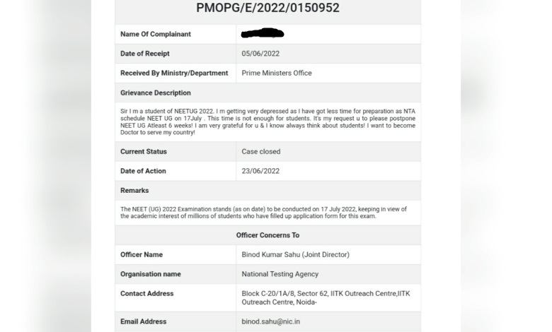 A NEET UG 2022 aspirant has received a reply from National Testing Agency (NTA) that the exam “Stands As On Date”, which is on July 17, 2022, read here to know more.