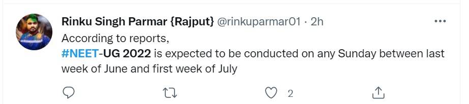 One of the related tweets reads, "According to reports, #NEET-UG 2022 is expected to be conducted on any Sunday between last week of June and first week of July"