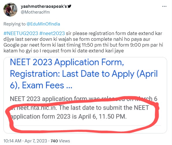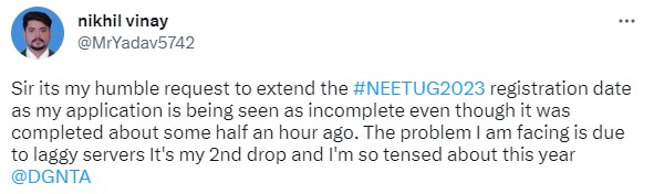 Students and stakeholders have also taken to Twitter and other social media platforms to extend the NEET 2023 application deadline.Sample some of the tweets below.