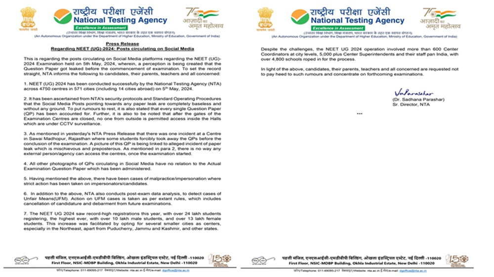 In conclusion, NTA urges candidates, parents, teachers, and stakeholders to disregard rumors and maintain focus on upcoming examinations. The NTA statement states that the successful conduct of NEET (UG) 2024 stands as a testament to NTA's commitment to fair and transparent examination practices.