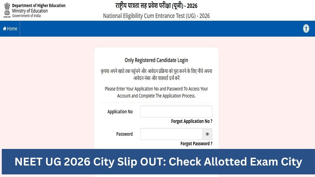 NEET UG 2026 City Slip OUT: Check Allotted Exam City and Details