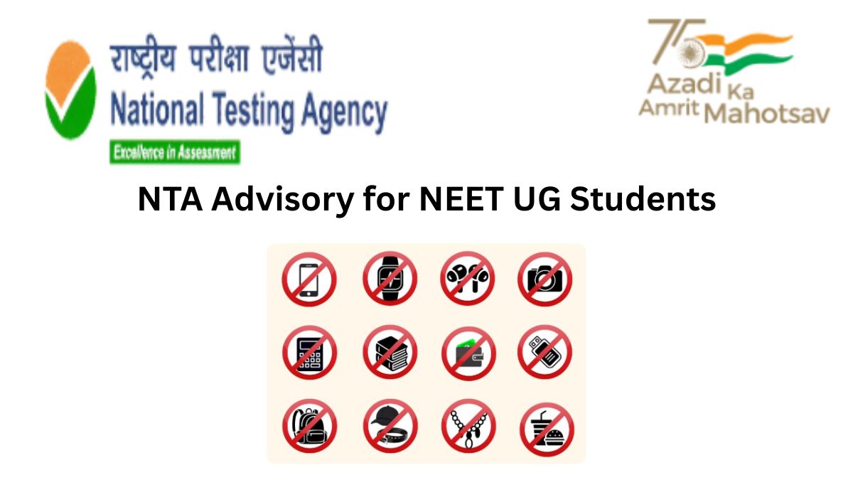 NTA has issued an important advisory for NEET UG 2026 students appearing for the exam on May 3, 2026. Students can check NTA official notification on prohibited items mock test, and other important rules to follow before and during the examination.