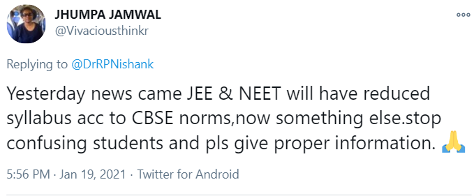 The education ministry’s decision contradicted Mr Pokhriyal’s statement leaving the medical aspirant confused about the new NEET 2021 syllabus.