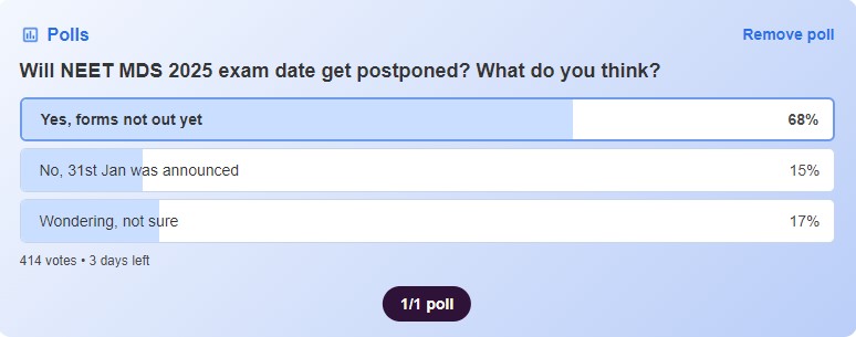 Moreover, 68 per cent of candidates have voted in favour of NEET MDS 2025 postponement in a poll ran by Shiksha.com. Take a look at the poll question and result below.
