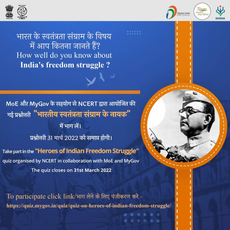 Announcing the launch on the quiz, the NCERT tweeted, "NCERT launched an online quiz "Heroes of Indian Freedom Struggle" on the birth anniversary of Netaji Subhash Chandra Bose in collaboration with @eduminofindia and @mygovindia. The end date to participate is 31 March 2022.’