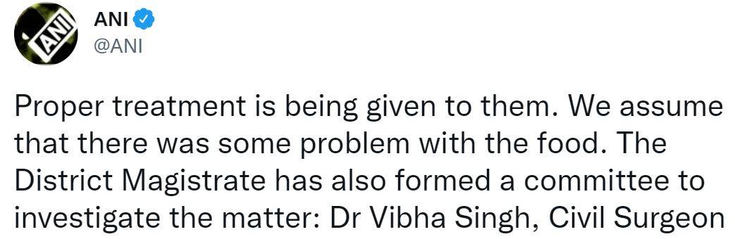 Another tweet from ANI informs, “Proper treatment is being given to them. We assume that there was some problem with the food. The District Magistrate has also formed a committee to investigate the matter: Dr Vibha Singh, Civil Surgeon”