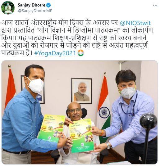 Minister of State for Education Sanjay Dhotre launched a diploma course in Yoga Science developed by the National Institute of Open Schooling (NIOS). The launch ceremony took place on the occasion of International Yoga Day 2021. Highlighting the significance of yoga, especially during the ongoing COVID-19 pandemic, during the launch, Mr Dhotre said that it has helped in creating many employment opportunities. The Education Ministry in its official statement highlighted the same.