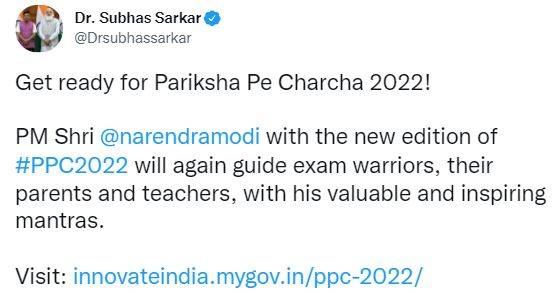 Prime Minister Narendra Modi is all set to interact with students, teachers and parents on Pariksha Pe Charcha 2022 before the upcoming exams. The session would help students and teachers dealing with stress and anxiety regarding exams amid the ongoing pandemic situation. Talking about Pariksha Pe Charcha 2022 session Union minister of state for education, Subhas Sarkar in his latest tweet said, “PM Modi with the new edition of Pariksha Pe Charcha 2022 will again guide exam warriors, their parents and teachers, with his valuable and inspiring mantras.”