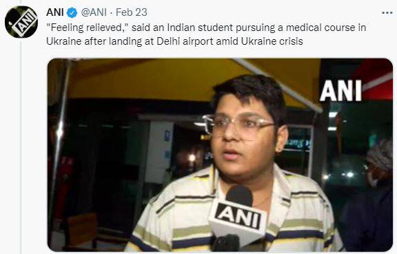 "Feeling relieved," said an Indian student pursuing a medical course in Ukraine after landing at Delhi airport amid Ukraine crisis