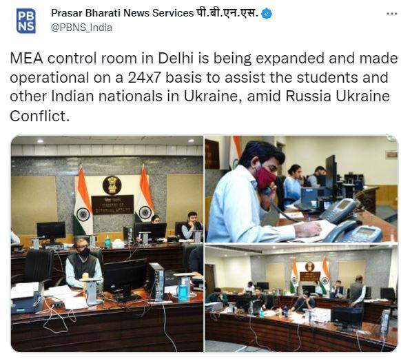 MEA control room in Delhi has been expanded and made operational on a 24x7 basis to assist the students and other Indian nationals in Ukraine, amid Russia Ukraine Conflict.