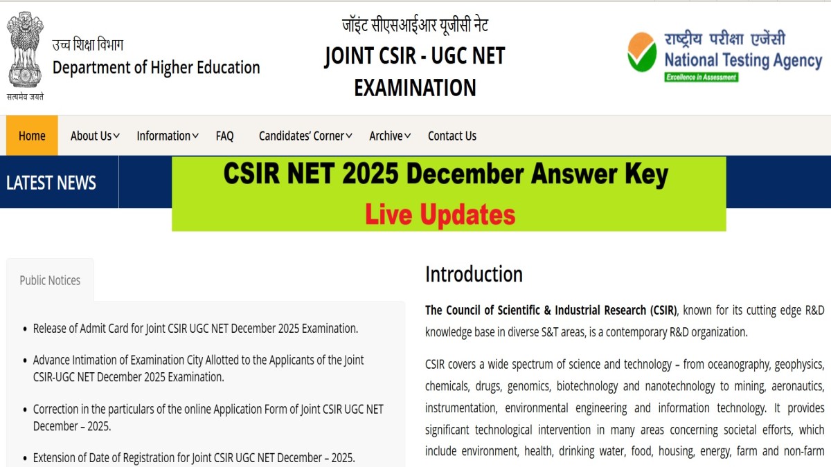 The CSIR NET 2025 Answer key is expected soon on the official portal at csirnet.nta.nic.in. The exam was conducted on December 18. Scroll down for the latest live updates about the CSIR NET answer key 2025 live updates.