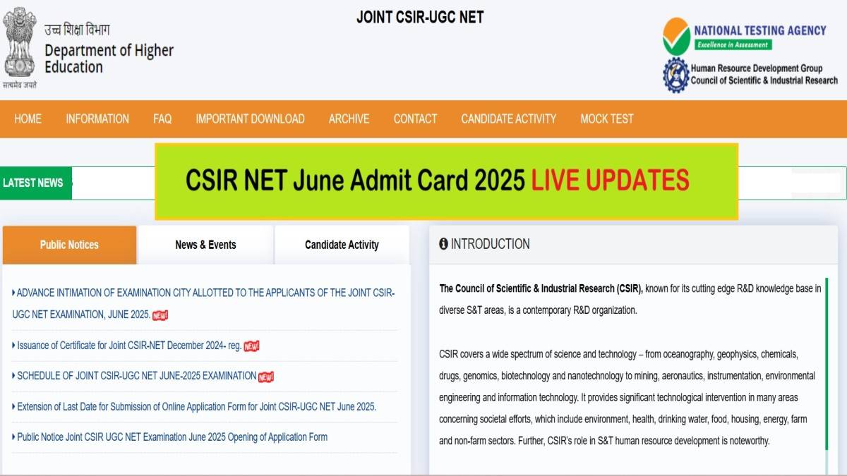 The NTA is expected to release the CSIR NET 2025 admit card today at csirnet.nta.ac.in. Stay tuned for the latest live updates!