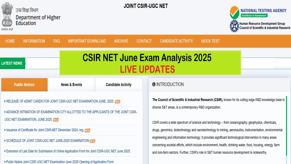 CSIR NET 2025 June Analysis Live: The NTA conducted the CSIR NET 2025 June exam on July 28 in two shifts for all five subjects in a single day. Check below CSIR UGC NET 2025 Life Science, Earth Science, Maths, Physical and Chemical Science exam analysis live updates. The analysis is based on student reactions. It lso consists of the memory based questions, answers, topics asked, difficulty level, etc. Scroll down for the latest live updates about the CSIR NET 2025 June exam.