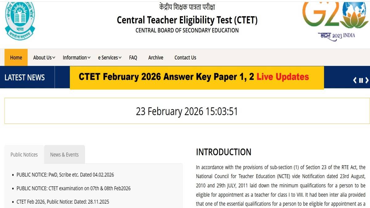 The CTET 2026 February session answer key be released on the official website at ctet.nic.in. Stay tuned for the latest live updates!