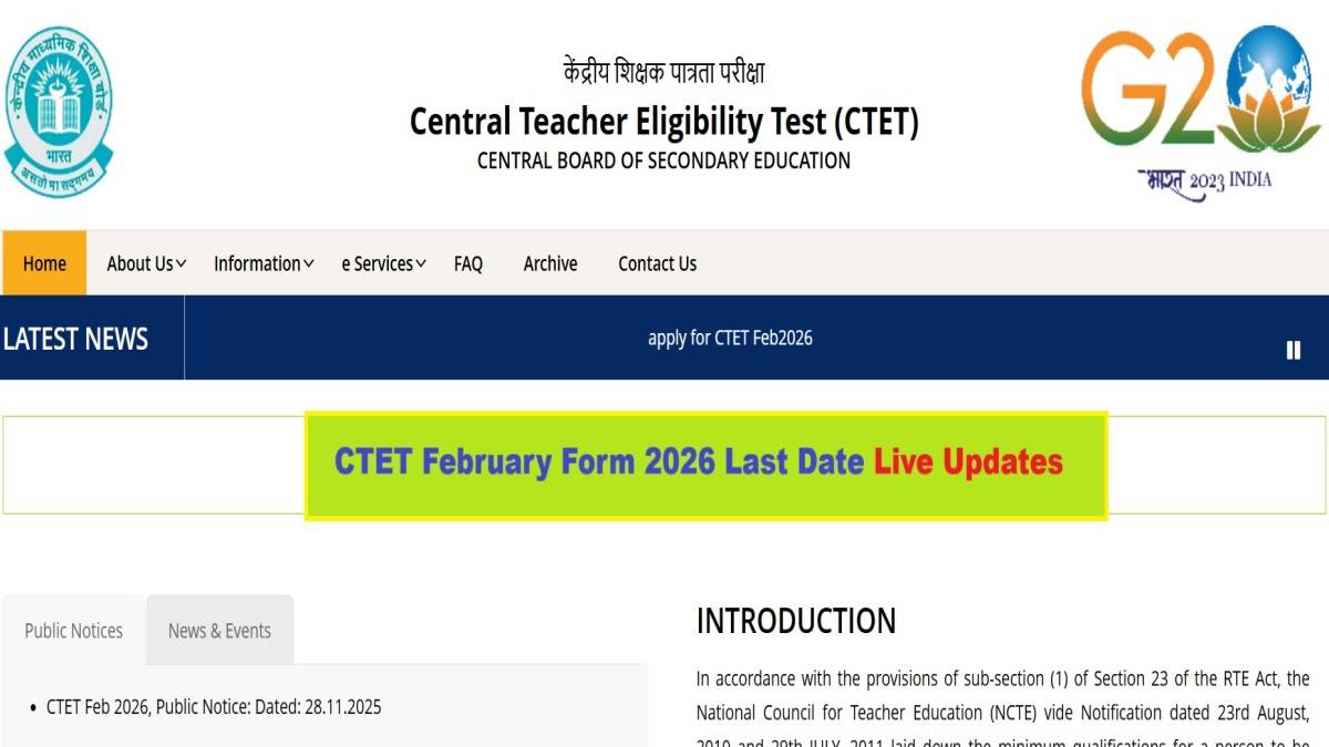 The last date to apply for the CBSE CTET 2026 exam is December 18 (11:59 PM). Stay tuned for the latest live updates!