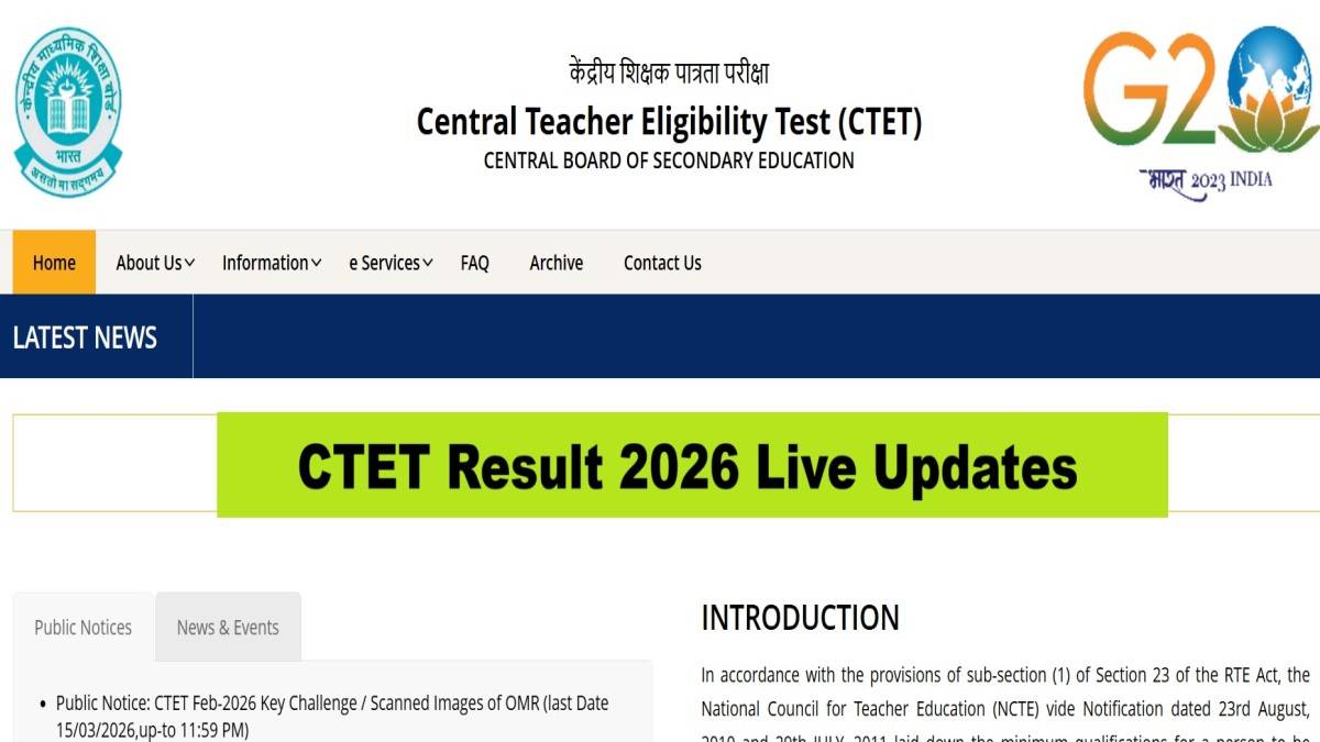 The CBSE released the provisional answer key for the CTET 2026 exam on March 12 and the objection raising window was opened until March 15. It was released along with the scanned images of the OMR answer sheets of the candidates. Scroll down for the latest live updates about the CTET Result 2026 including the download link, methods to check and more.